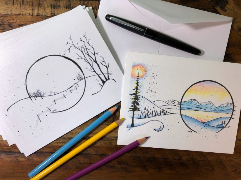 In the spirit of childhood playfulness — and because I just loved doing the sketches for this series so much! — I’m also making a limited number of black-and-white ink versions of these scenes available in my shop for you to color and decorate any way you wish! Make them your own with colored pencils, crayons or markers — or send them as-is for a striking statement of simple elegance.