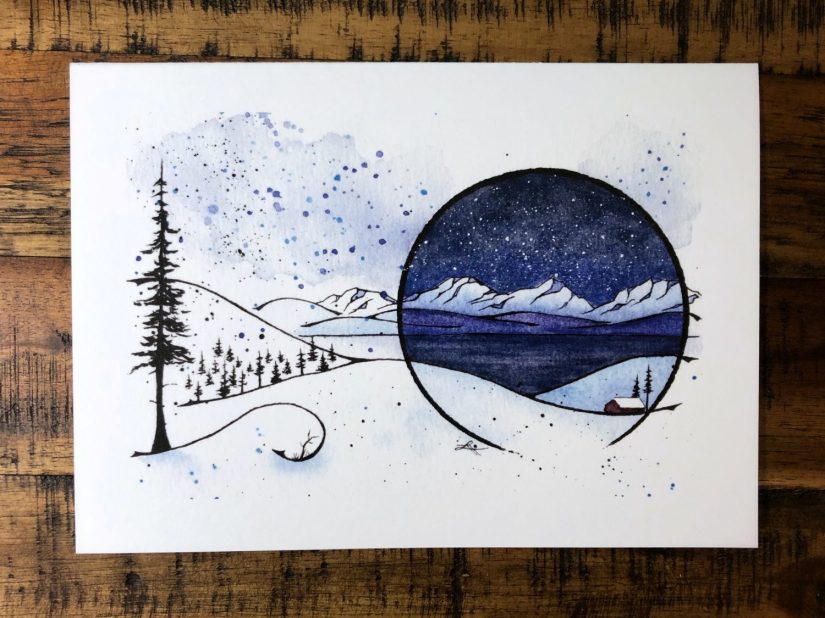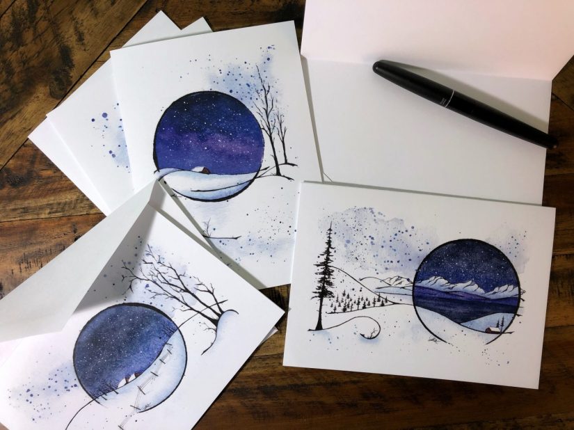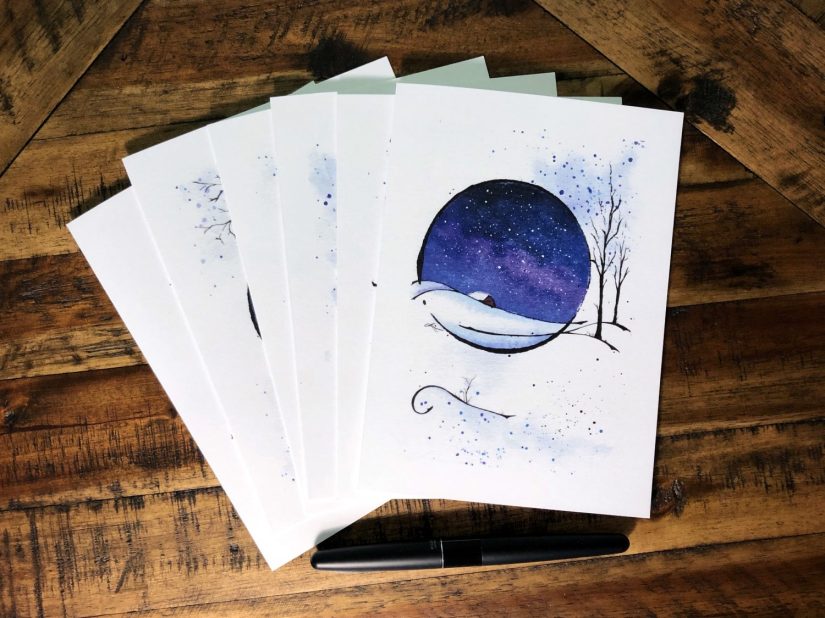 Finally! After much ado and work and waiting, my watercolor greeting cards for this winter holiday season are now available for purchase! Each of these cards features a fine art print of one of my original watercolor paintings — and they’re blank on the inside, so you can add your own message for that special someone!