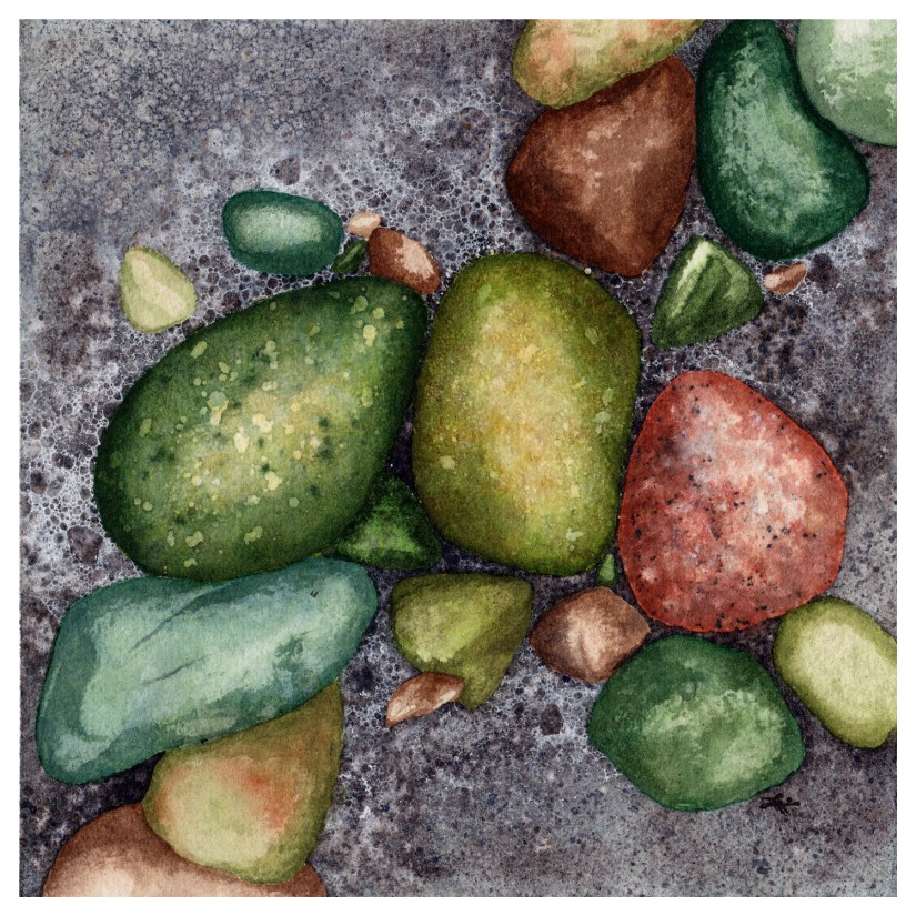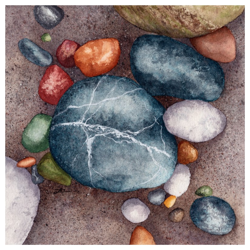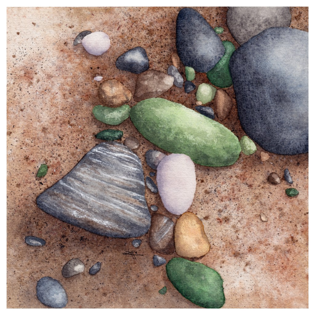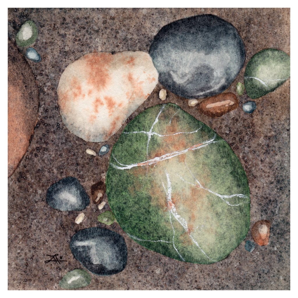 In any case, I love rocks like a rock. I love the words and feelings they evoke: hard, rough, worn — words that, when applied to so many other things in life, seem so difficult and undesirable. Stone somehow redeems such words, joining them with others: solid, smooth, tumbled, settled, still and even, sometimes and unexpectedly, soft…