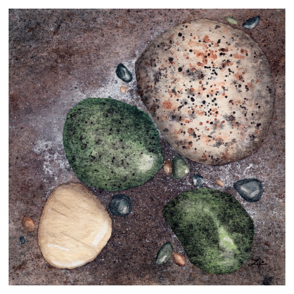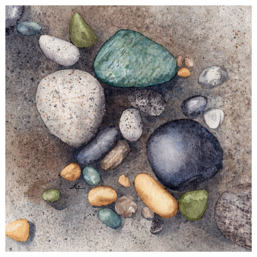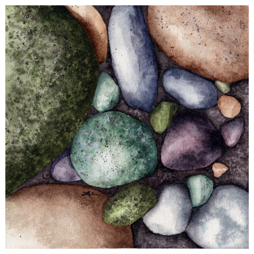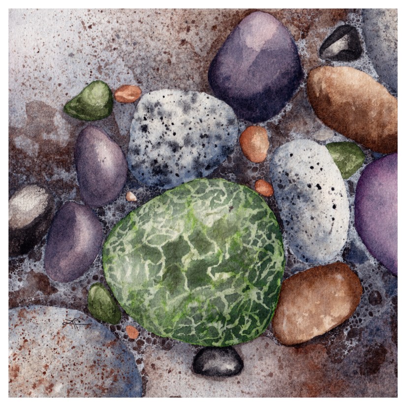 In any case, I love rocks like a rock. I love the words and feelings they evoke: hard, rough, worn — words that, when applied to so many other things in life, seem so difficult and undesirable. Stone somehow redeems such words, joining them with others: solid, smooth, tumbled, settled, still and even, sometimes and unexpectedly, soft…